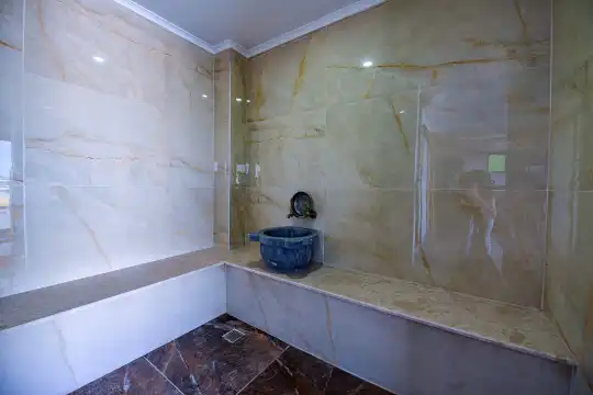 1.Yatak odası: Çift kişilik yatak, ebeveyn banyo, jakuzi, klima, elbise dolabı, makyaj masası, havuz ve bahçe manzaralı balkon yer almaktadır.