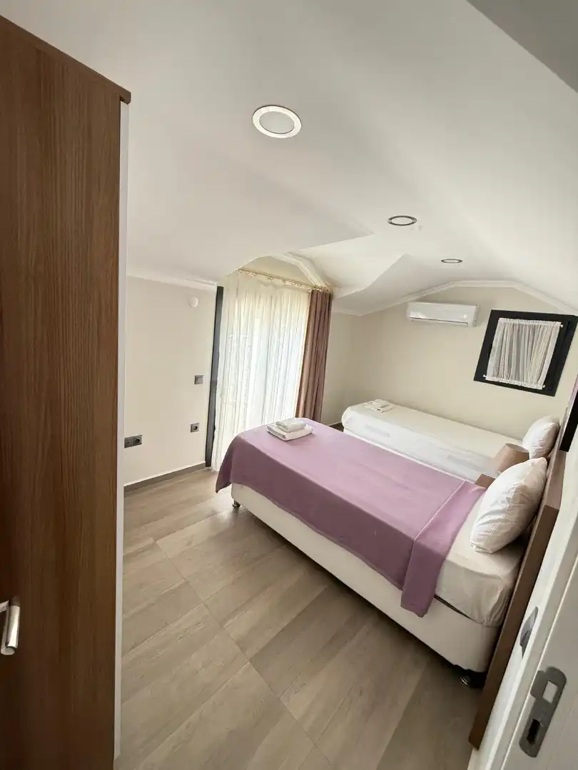 3.Yatak odası: Tek kişilik iki tane yatak, klima, elbise dolabı yer almaktadır.