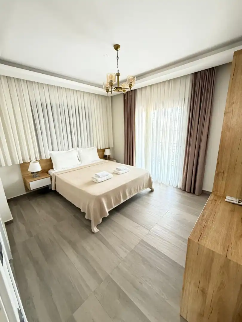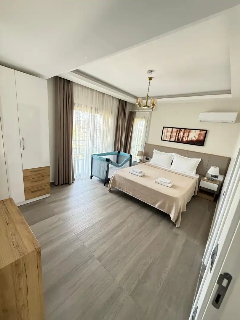 1.Yatak odası: Çift kişilik yatak, ebeveyn banyo, klima, elbise dolabı, babadağ manzaralı terasyer almaktadır.